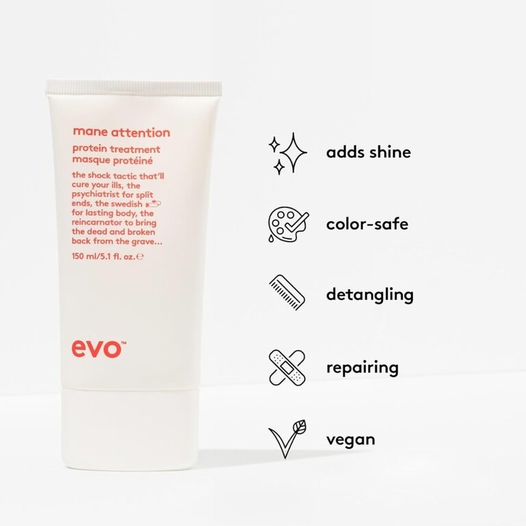 Le masque protéiné "Mane Attention" par Evo est un traitement capillaire intense conçu pour réparer en profondeur, améliorant ainsi l'état et la brillance des cheveux colorés et abîmés. Sa formule enrichie de quinoa et de soja hydrolysé reconstruit les dommages et aide au maintien durable des reflets de coloration, tandis que le beurre de karité revitalise, hydrate et nourrit chacune des mèches. Les cheveux sont plus doux, plus brillants et plus faciles à démêler.