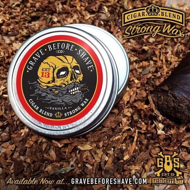 La cire a moustache Fisticuffs "G.B.S Cigar Blend" a un riche parfum de cigare avec des notes de vanille.