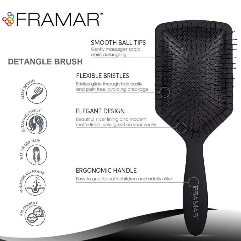 Transforme ta routine capillaire avec la brosse à démêler de Framar. Cet outil professionnel vous assure un démêlage ultra-efficace et traverse les nœuds les plus récalcitrants sans effort, ce qui réduit la casse et vous permet de dire adieu aux cheveux qui finissent sur le sol. Conçue pour protéger la fibre, son design unique assure une performance maximale sur tous les types de chevelures, des plus fines aux plus épaisses. Elle est le partenaire idéal pour un brossage sur cheveux mouillés, secs ou avec extensions.