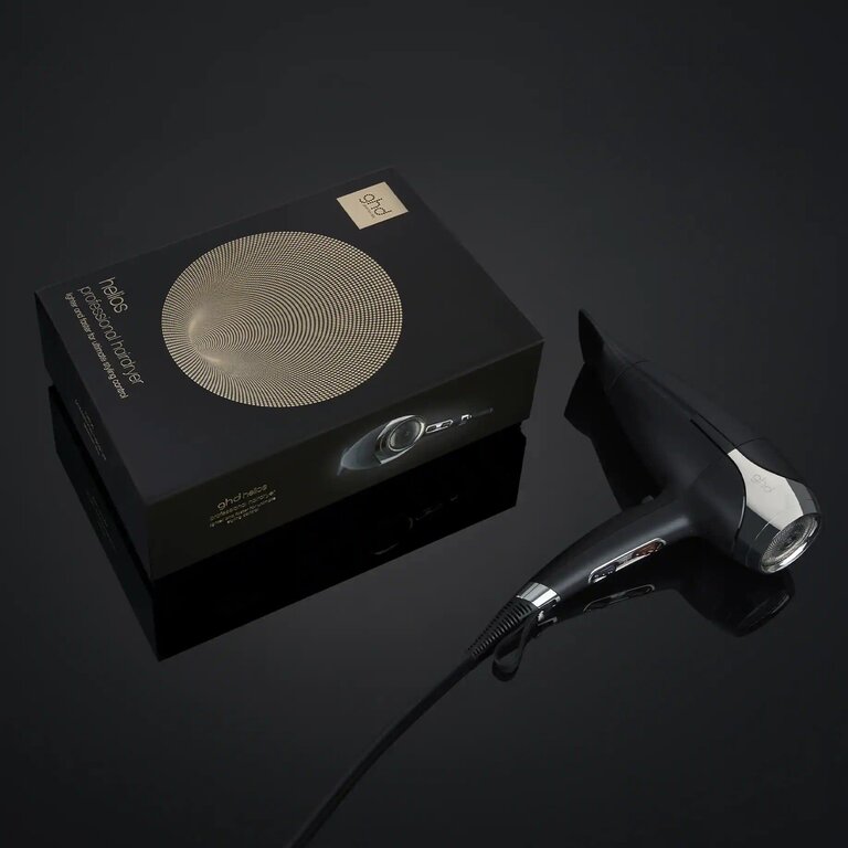 Développé par les principaux ingénieurs, physiciens et professionnels du coiffage de GHD, le GHD Helios offre des résultats dignes d'un salon et 30% de brillance en plus. Doté de la Technologie Aeroprecis sur mesure, combinant l'aérodynamisme interne et une buse profilée pour concentrer le puissant flux d'air, ce sèche-cheveux professionnel GHD offre un contrôle précis du coiffage. Le moteur à courant continu sans balais à durée de vie plus longue crée un puissant flux d'air de 120 km/h, tandis que le système de technologie acoustique unique garantit de faibles niveaux sonores lors du coiffage.