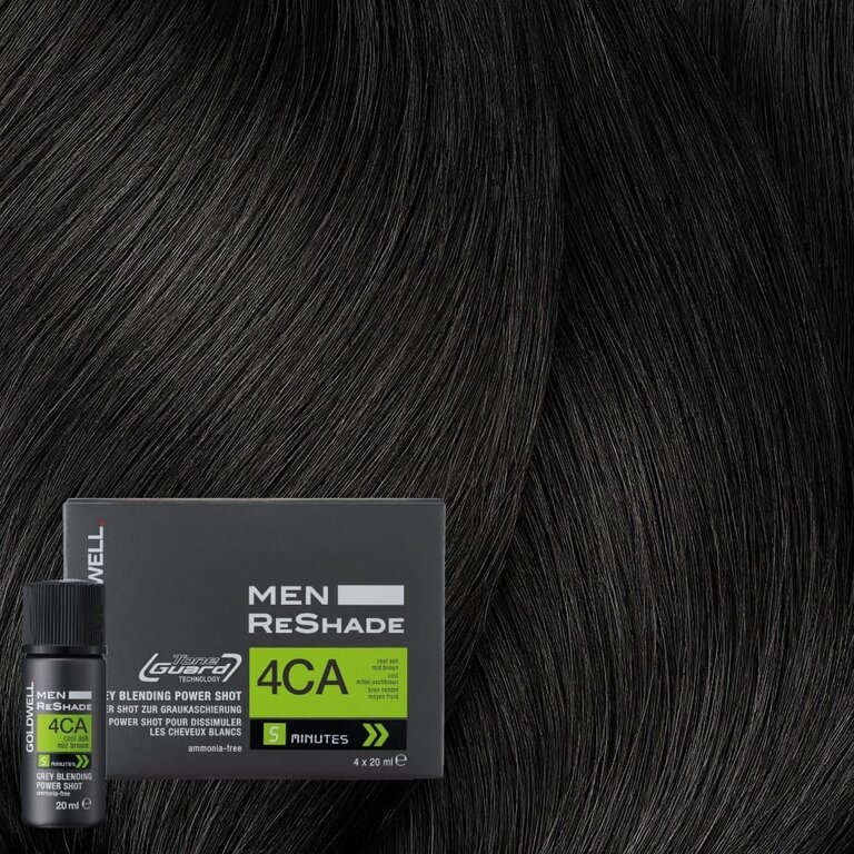 La coloration sans ammoniaque "Men ReShade" de Goldwell est la façon la plus discrète de dissimuler les cheveux gris en moins de 5 minutes, de manière professionnelle pour un résultat naturel. Lorsqu’utiliser avec l’applicateur à pompe, inclus avec le révélateur, elle combine la facilité d'application d'une mousse avec le résultat naturel d'une coloration standard. La chevelure semble plus dense et arbore un look plus frais et plus jeune.