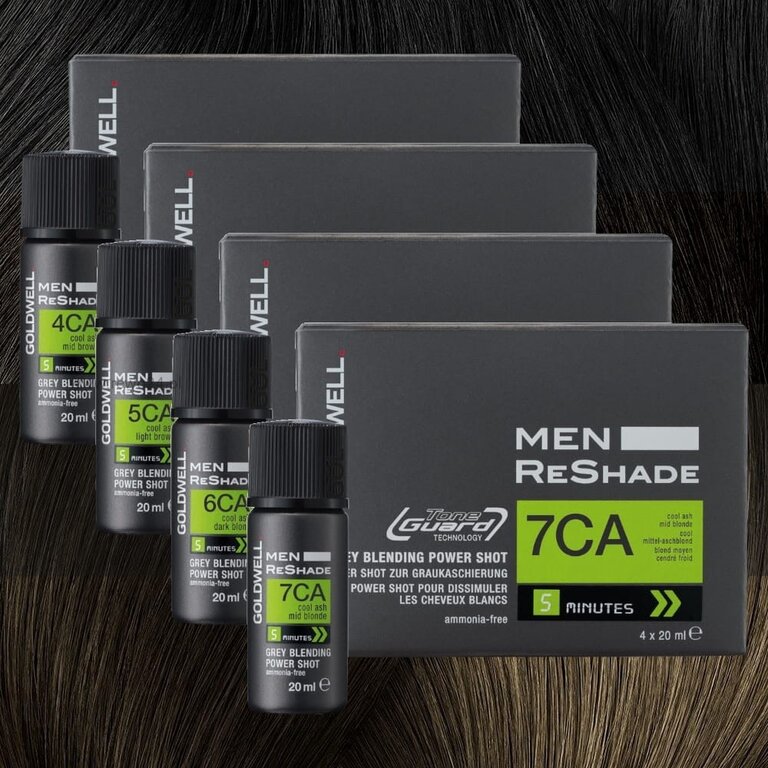 S'inscrireColoration Power Shot pour dissimuler les cheveux blancs "Men ReShade" (4x 20ml/0.6oz) 6CA - Blond foncé cendré froid