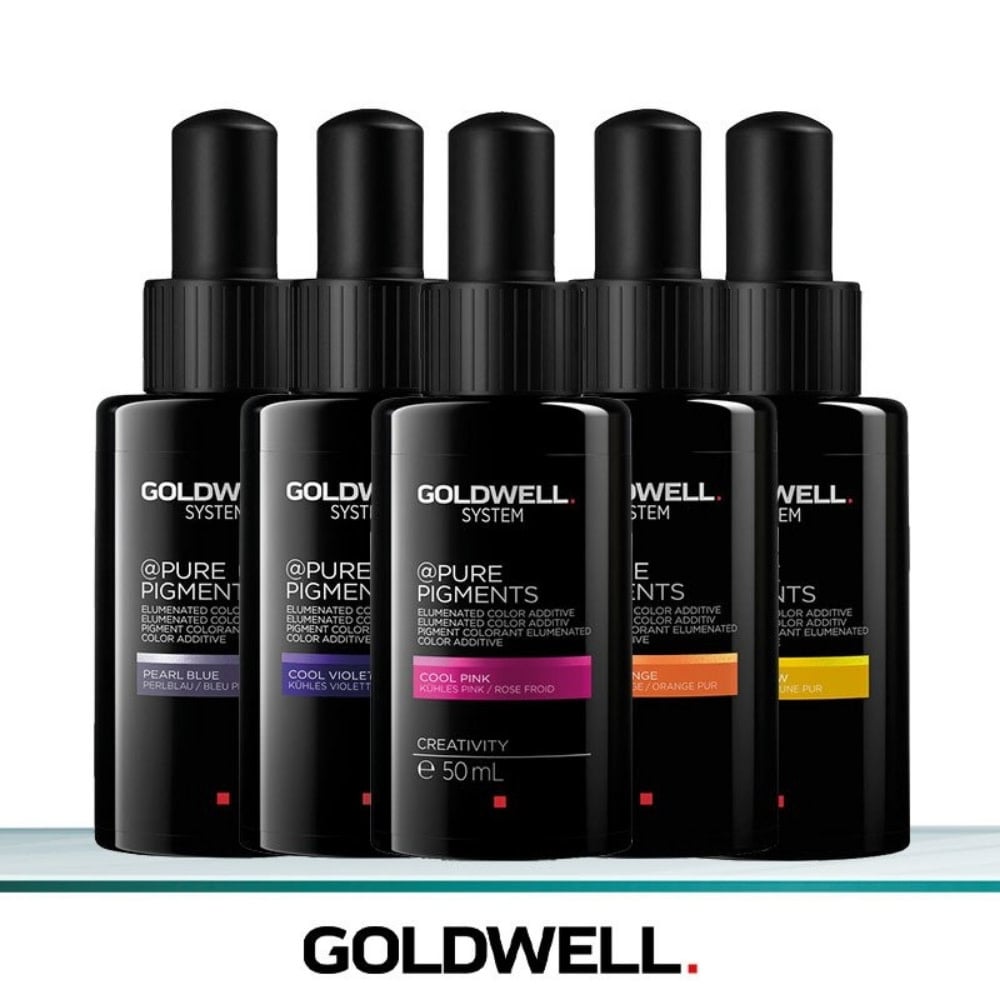 Obtenez une couleur exclusive et distinctive avec les pigments additifs "Elumenated @Pure Pigments" de Goldwell. Ces pigments liquides très concentrés se mélangent facilement à votre coloration habituelle, amplifiant l'intensité de votre couleur jusqu'à trois fois.
