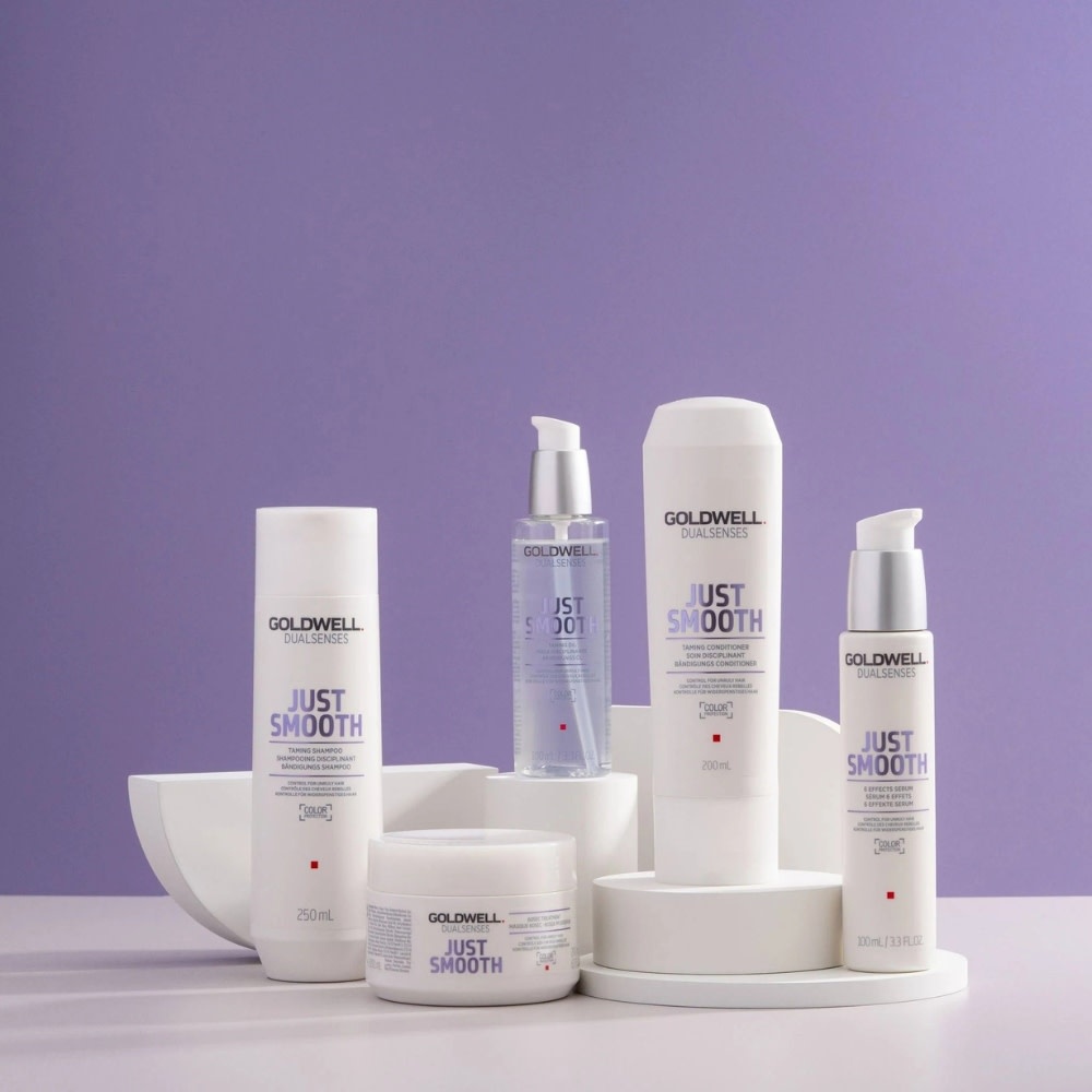 Poursuivre avec le revitalisant ou le masque "Just Smooth" de Goldwell.