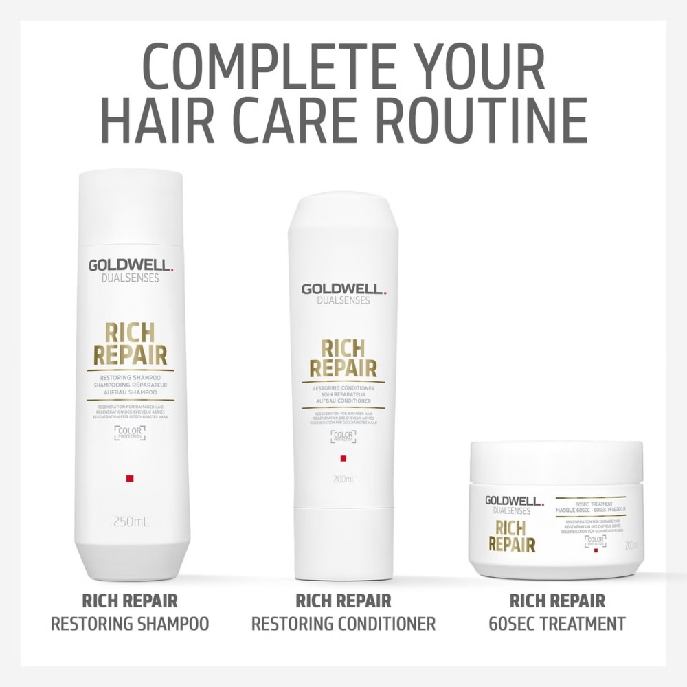 Poursuivre avec le revitalisant ou le masque "Rich Repair" de Goldwell