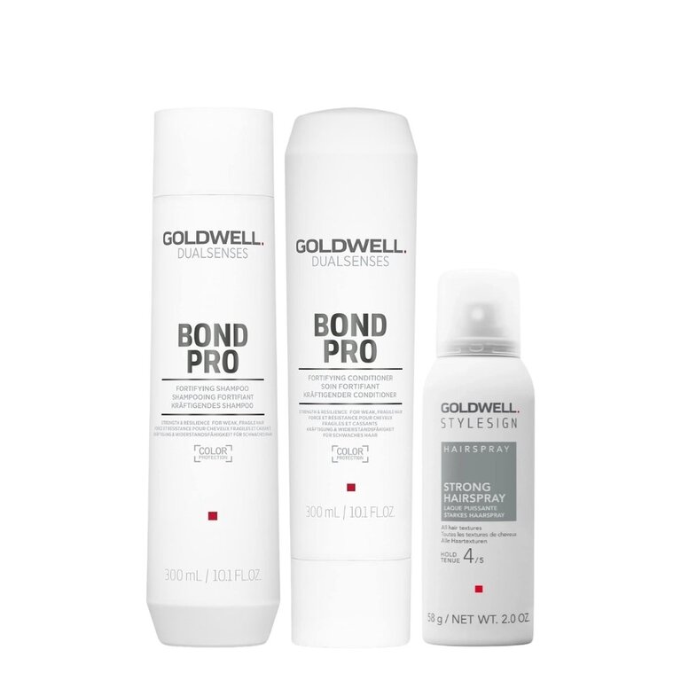 S'inscrireTrio élégance fortifiant "Bond Pro" shampoing, revitalisant et fixatif tenue puissante "Strong Hairspray" (2x300ml/10.1oz, 58g/2.0oz)
