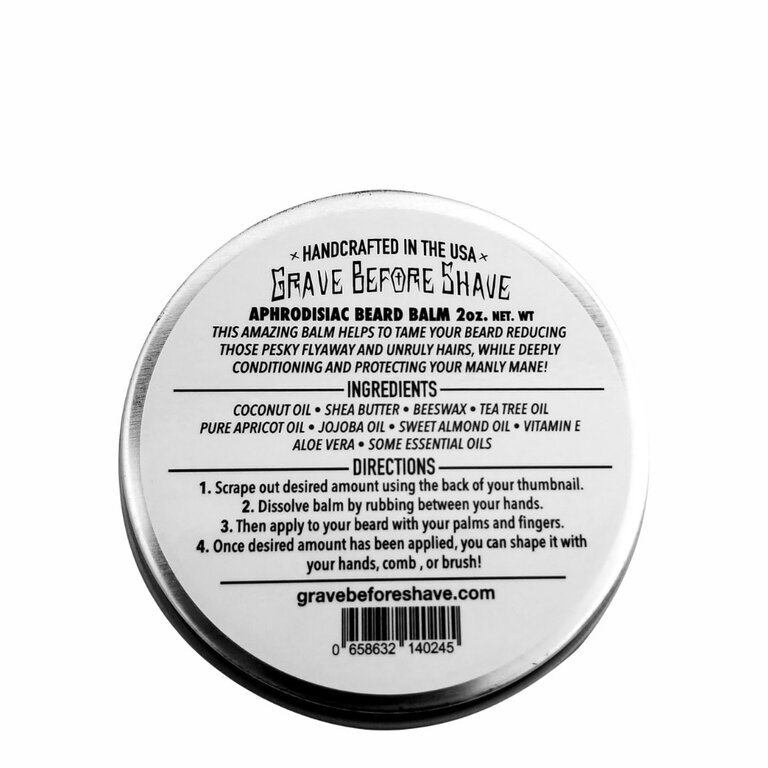 Le baume à barbe "Aphrodisiac" de Grave Before Shave, utilise uniquement les huiles et les beurres les plus fins utilisés dans tous les produits G.B.S.