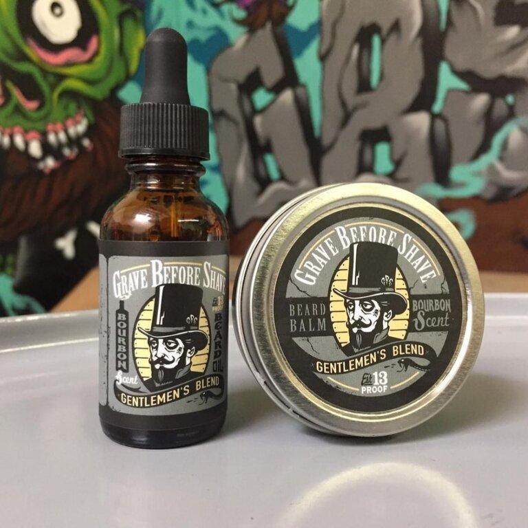 Le baume à barbe "Gentlemen's Blend Bourbon" de Grave Before Shave, utilise uniquement les huiles et les beurres les plus fins utilisés dans tous les produits G.B.S.