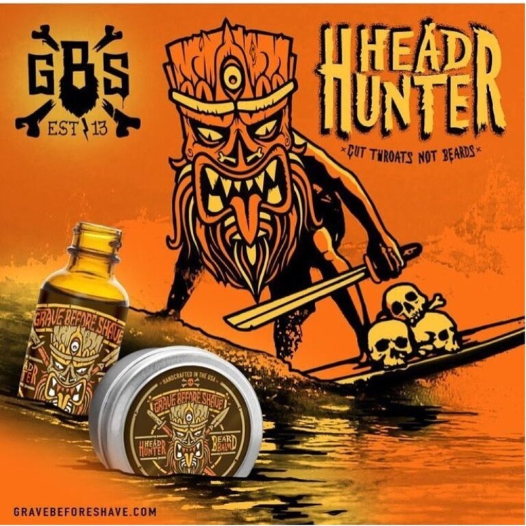 Le baume à barbe "Head Hunter Blend" de Grave Before Shave, utilise uniquement les huiles et les beurres les plus fins utilisés dans tous les produits de G.B.S.
