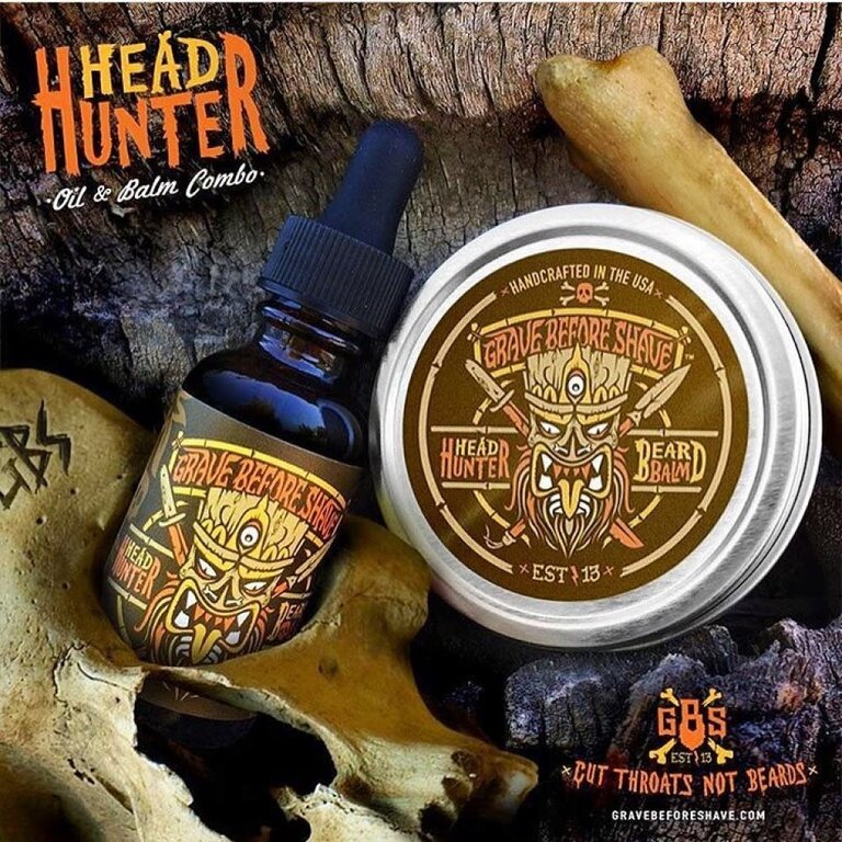 L'huile à barbe "Head Hunter" de Grave before Shave, Contient tous les ingrédients naturels qui conditionnent, hydratent et renforcent la barbe, favorisant une croissance saine.