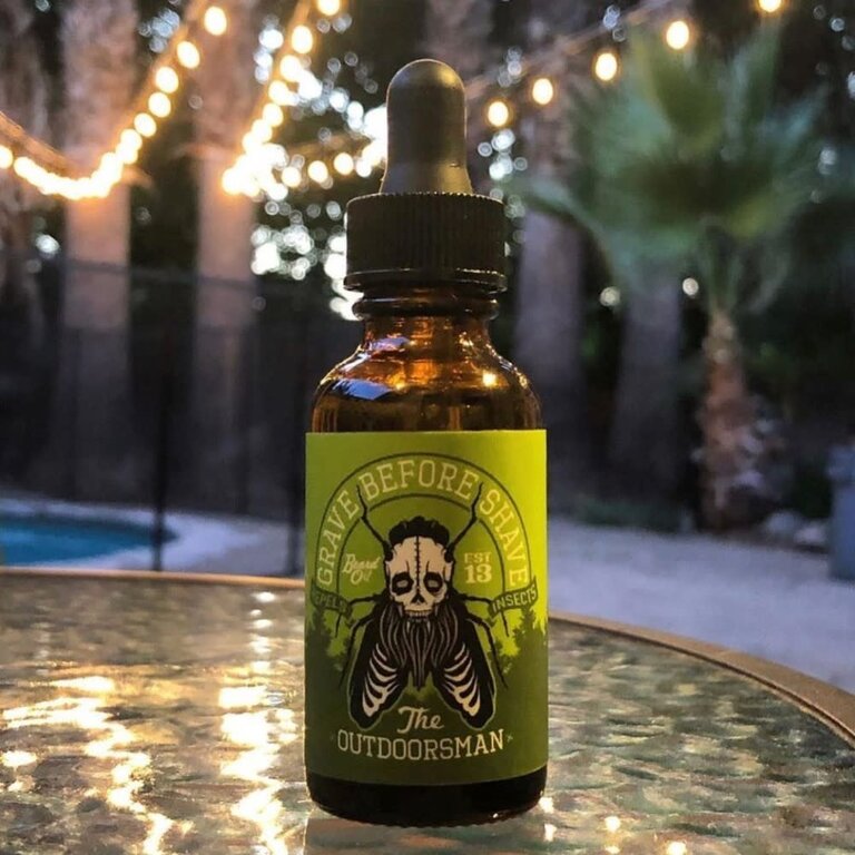 L'huile à barbe "Outdoorsman Blend" de Grave before Shave, Contient tous les ingrédients naturels qui conditionnent, hydratent et renforcent ces poils précieux qui favorisant une croissance saine.