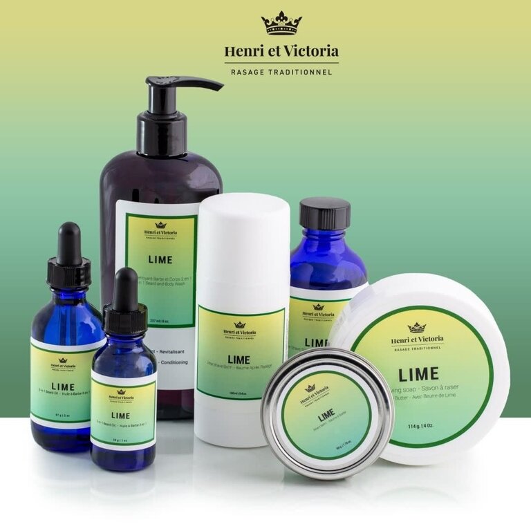 Le baume à barbe Lime d'Henri et Victoria est un incontournable pour l'hydratation de la barbe et de la peau du visage. Il permet de réduire l'irritation, les démangeaisons et même prévenir les poils incarnés sur le visage.