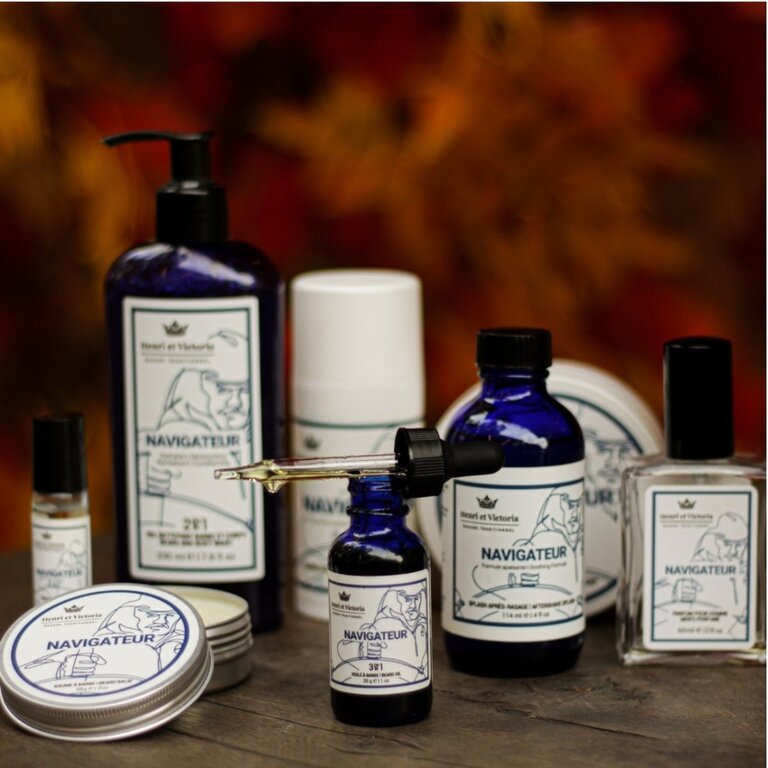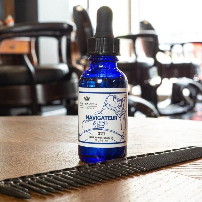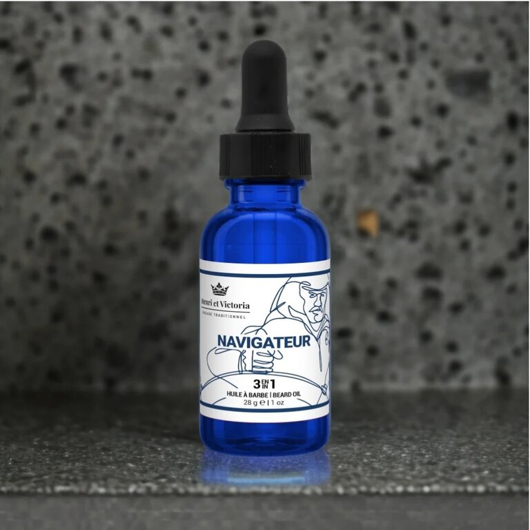 L'huile à barbe Navigateur d'Henri et Victoria, est un produit essentiel pour le barbu qui souhaite que sa barbe reste hydratée, saine et lisse. L'huile à barbe s'utilise quotidiennement eti fonctionne encore mieux lorsqu'elle est combinée à un baume à barbe. Ajoutez de la brillance, de la vitalité et restaurez l'humidité là où vous en avez le plus besoin.