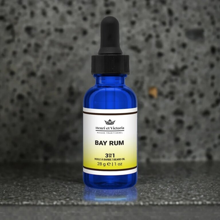 L'huile à barbe Bay Rum d'Henri et Victoria, est un produit essentiel pour le barbu qui souhaite que sa barbe reste hydratée, saine et lisse. L'huile à barbe s'utilise quotidiennement eti fonctionne encore mieux lorsqu'elle est combinée à un baume à barbe. Ajoutez de la brillance, de la vitalité et restaurez l'humidité là où vous en avez le plus besoin.