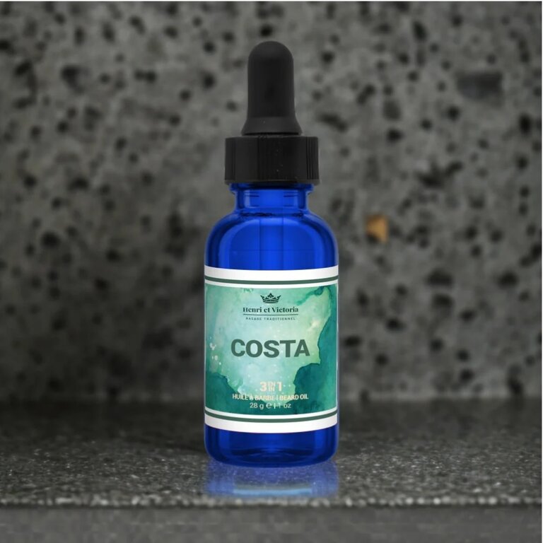 L'huile à barbe Costa d'Henri et Victoria, est un produit essentiel pour le barbu qui souhaite que sa barbe reste hydratée, saine et lisse. L'huile à barbe s'utilise quotidiennement eti fonctionne encore mieux lorsqu'elle est combinée à un baume à barbe. Ajoutez de la brillance, de la vitalité et restaurez l'humidité là où vous en avez le plus besoin.