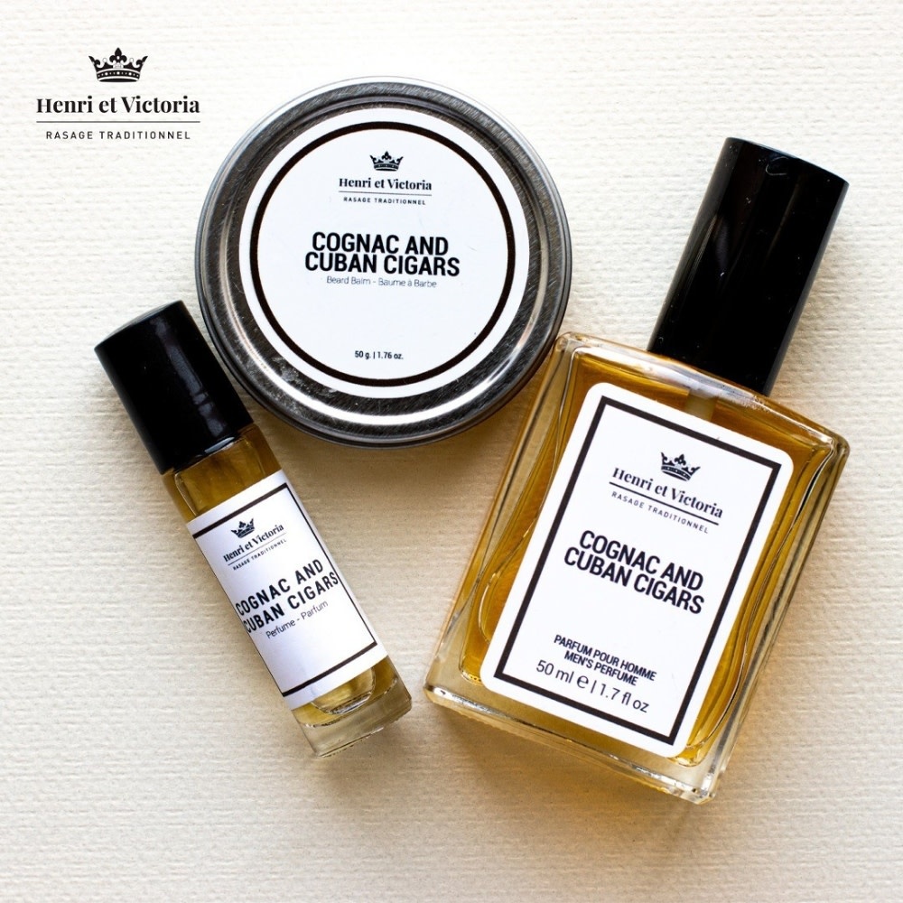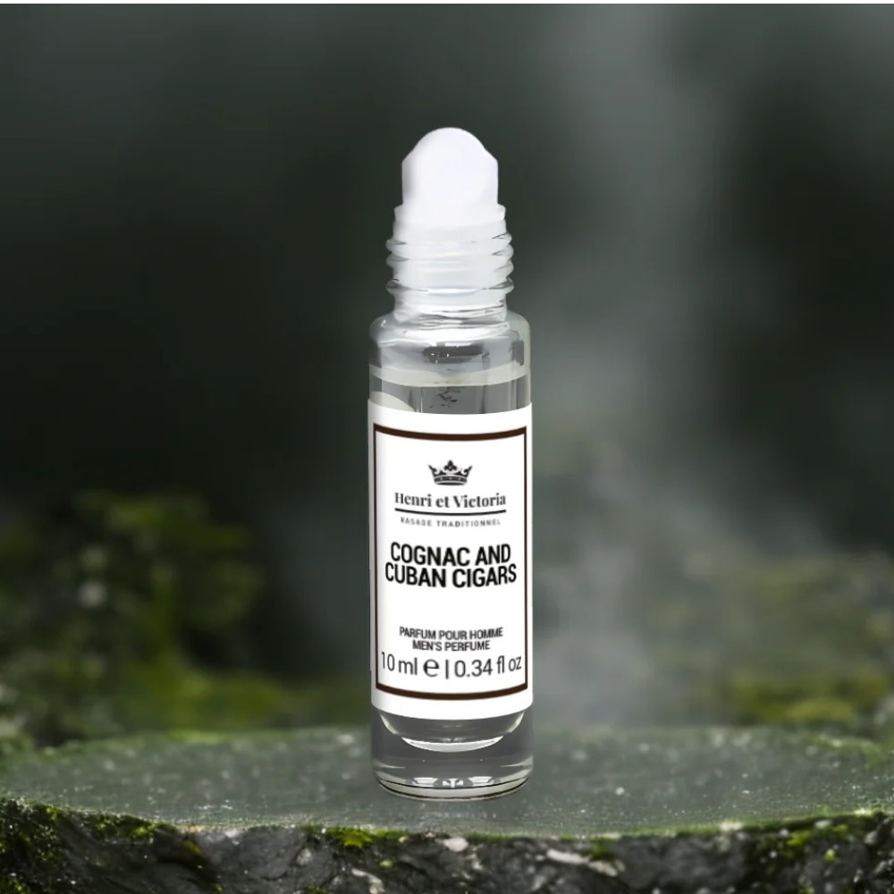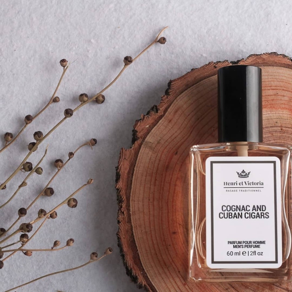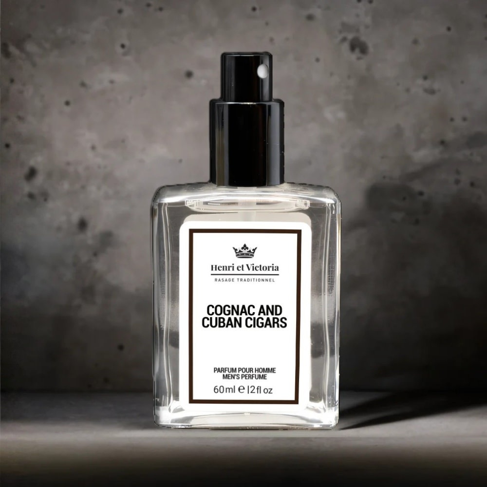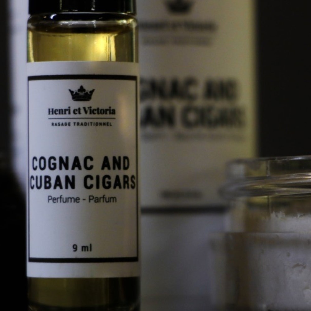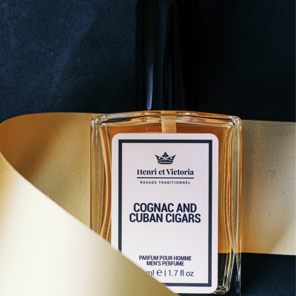 Fermez les yeux, savourez l’arôme… et vous voilà à Cuba. "Cognac and Cuban Cigars", une fragrance masculine signée Henri et Victoria, vous transporte dans un univers de plaisirs raffinés : une partie de poker l’après-midi, un cigare roulé à la main, un cognac vieilli à la main. Ce parfum incarne la virilité élégante, alliant la douceur du cognac à un charme fumé subtil et frais.