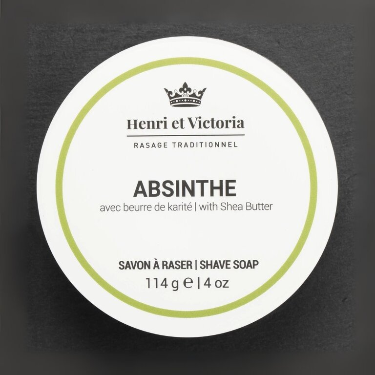 Le savon à raser "Absinthe" d'Henri et Victoria, un indispensable du toilettage traditionnel pour chaque homme qui savoure le plaisir d’un rasage humide classique.