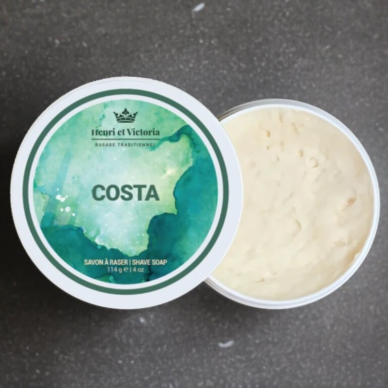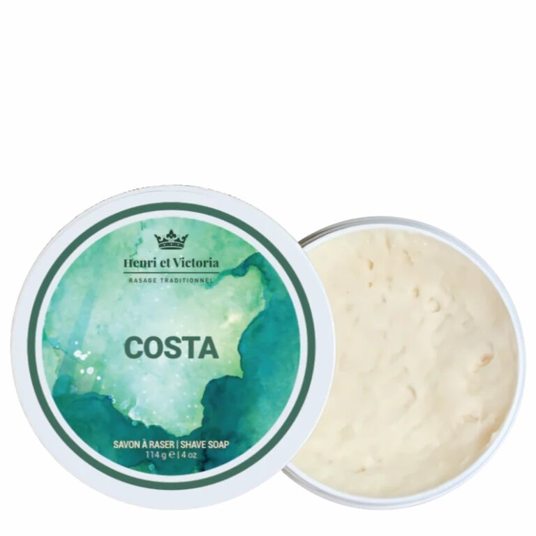 Le savon à raser "Costa" de Henri et Victoria, un indispensable du toilettage traditionnel pour chaque homme qui savoure le plaisir d’un rasage humide classique.