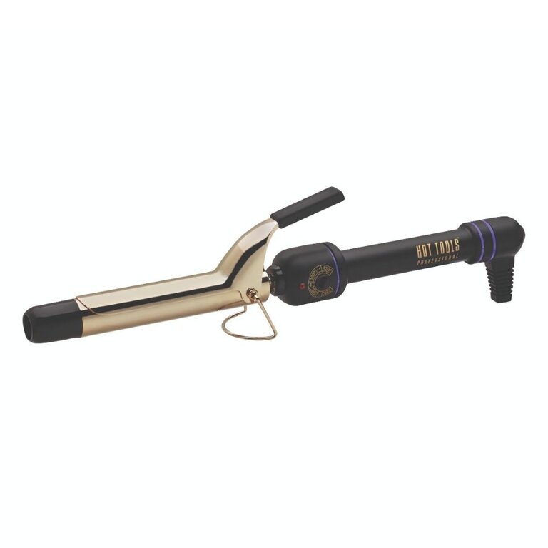 Voici le fer à friser avec pince de la collection "Pro Artist 24K Curling Iron" de Hot Tools. La surface de coiffage emblématique du fer à friser avec baguette en or 24 carats chauffe rapidement et retient la chaleur de manière uniforme.