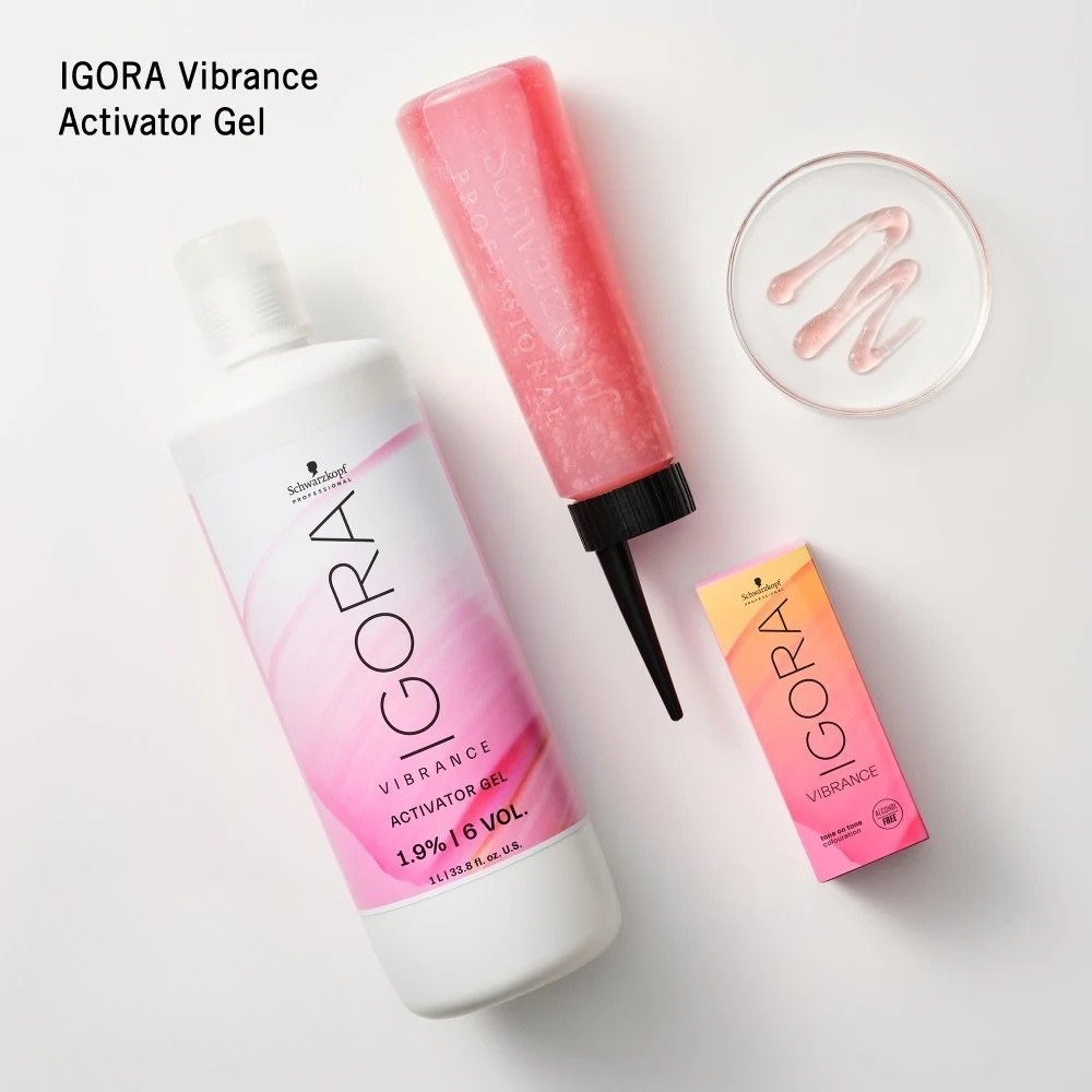 Le gel activateur "Vibrance Activator Gel" de Schwarzkopf Professional est spécialement conçu pour être utilisé avec la coloration demi-permanente Igora Vibrance. Il contient un agent gélifiant afin d’obtenir une consistance gel, idéal pour l’application au flacon.