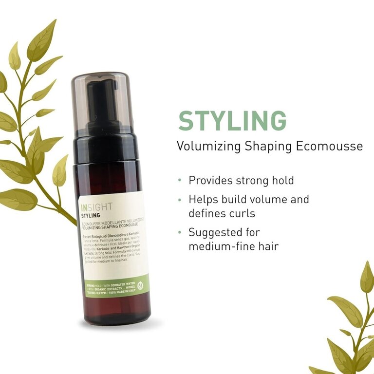 La mousse modelante volumisante "Ecomousse" d'Insight apporte volume, élasticité et texture, tout en définissant naturellement boucles et ondulations. Compatible avec tous les types de cheveux, elle assure une tenue souple à moyenne.