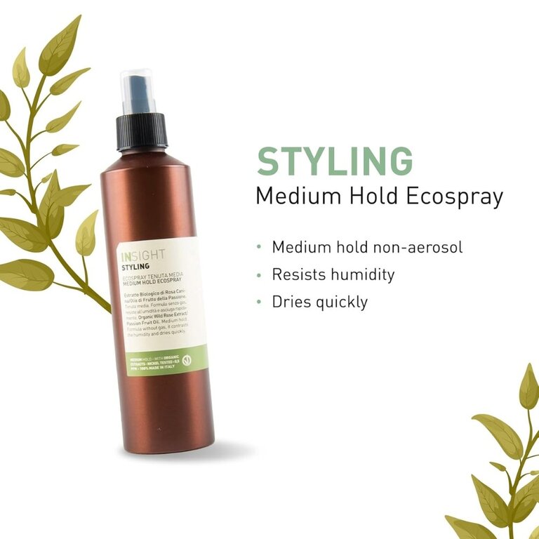 L'Ecospray tenue moyenne "Medium Hold Ecospray" d'Insight est un fixatif écologique et sans gaz qui offre une coiffure à la fois polyvalente et naturelle. Il assure une tenue impeccable sans laisser de résidus collants ni durcir vos cheveux, leur conférant en prime un éclat naturel.