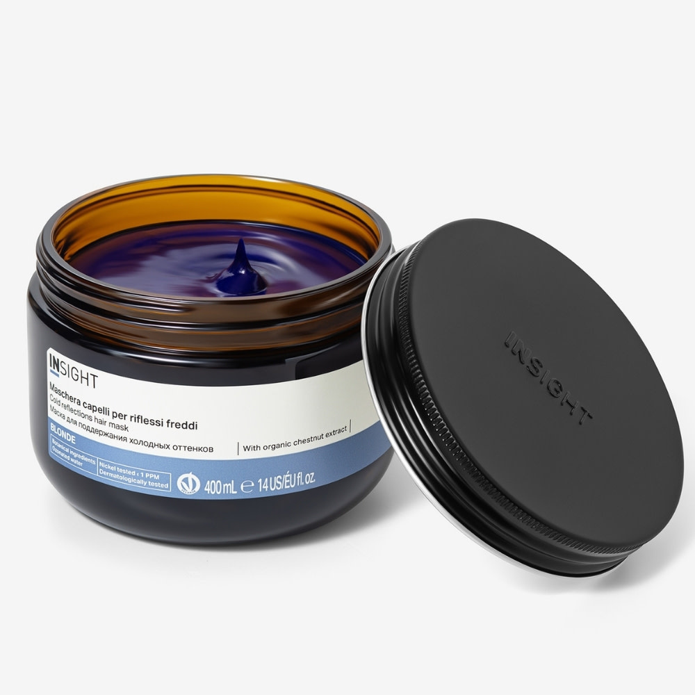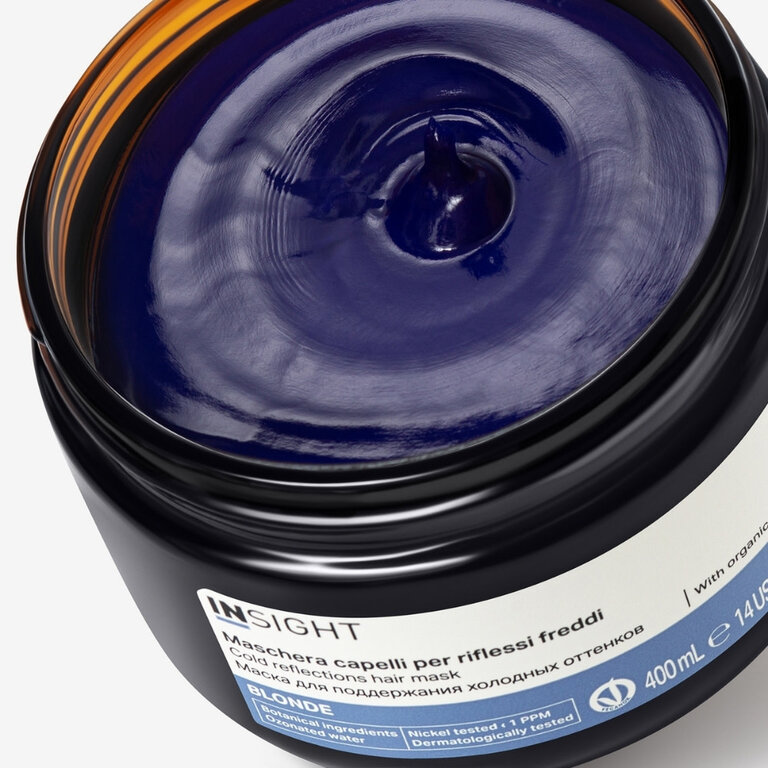 Sublimez vos cheveux blonds avec le masque pour reflets froids "Cold Reflections Mask" d'Insight. Qu'ils soient naturels, colorés ou décolorés, ce masque est formulé pour corriger et magnifier votre chevelure.