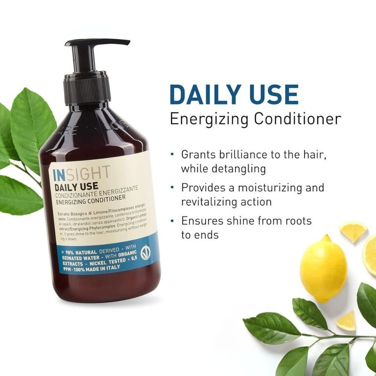 Plongez dans une expérience sensorielle revigorante avec le revitalisant énergisant "Daily Use Energizing Conditoner" d'Insight. Cet après-shampoing expert délivre une hydratation efficace, nourrissant chaque mèche sans alourdir. Les huiles végétales et l'extrait de citron biologique contenus dans sa composition agissent en synergie pour révéler des cheveux d'une douceur et d'une brillance remarquables. De plus, il maintient l'hydratation naturelle de la chevelure, assurant un démêlage sans effort et une légèreté bienvenue.