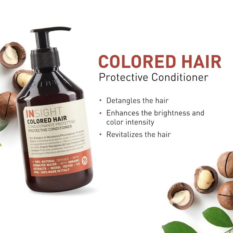 Pour des cheveux colorés vibrants et préservés, choisissez le revitalisant protecteur "Colored Hair Protective Conditioner" d'Insight. Sa formule essentielle démêle sans effort, nourrit intensément sans compromettre la légèreté, et assure une protection durable de la coloration contre la décoloration prématurée.