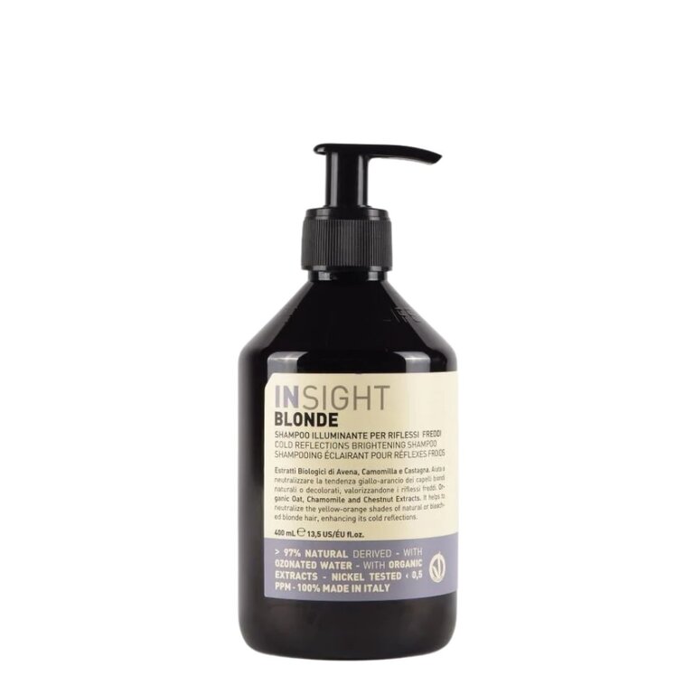 Prenez la pleine maîtrise de vos cheveux blonds avec le shampoing illuminant pour reflets froids "Brightening Shampoo" d'Insight. il procure une hydratation profonde et améliore la souplesse, conférant ainsi une douceur et une luminosité impeccables.