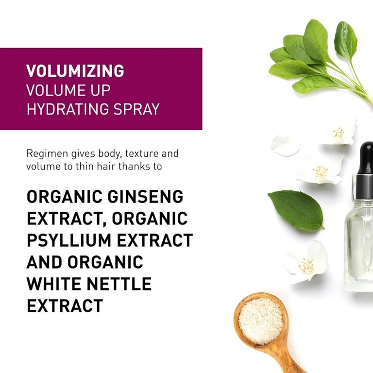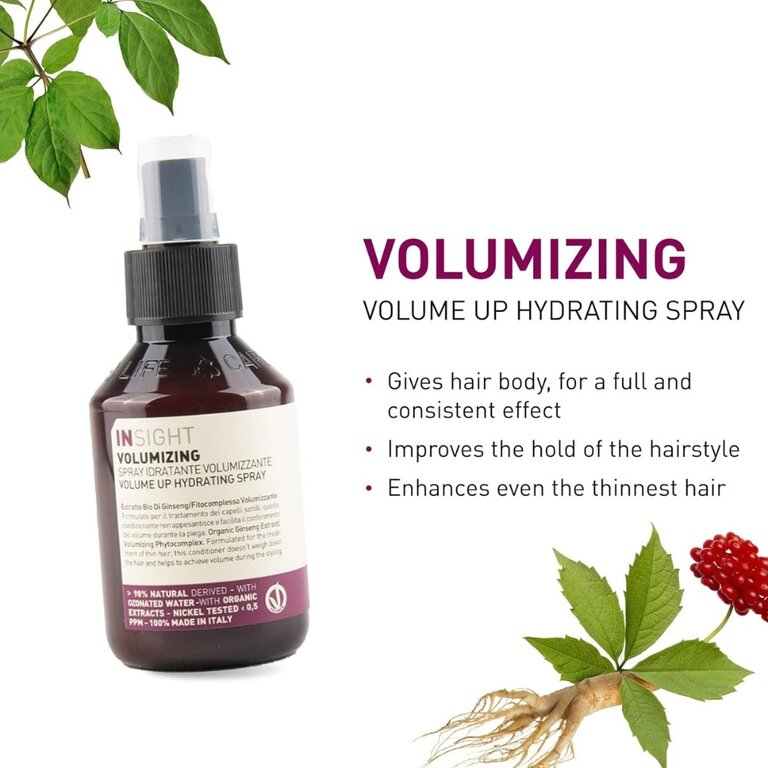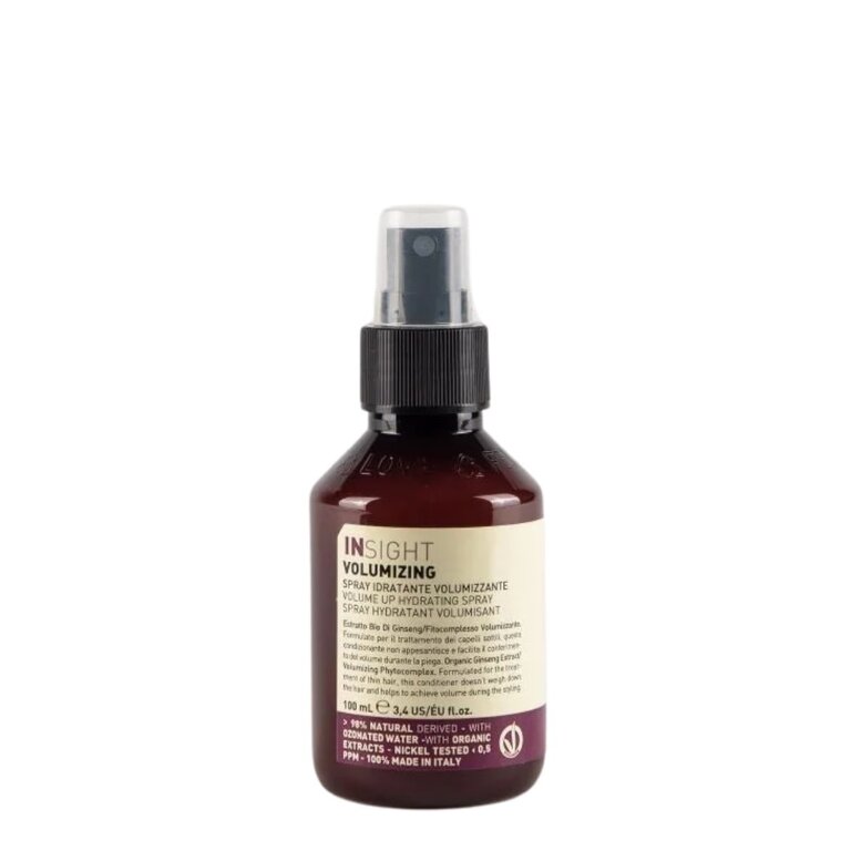 Offrez à vos cheveux fins un coup de pouce instantané avec le spray hydratant volume "Volumizing Volume Up" d'Insight. Ce spray démêlant est un après-shampoing sans rinçage conçu spécifiquement pour ne pas alourdir les cheveux les plus fins et délicats. Enrichie d'extraits biologiques de ginseng, d'ortie blanche et de psyllium, sa formule texturisante agit en profondeur pour renforcer, hydrater et épaissir les cheveux plats, leur conférant ainsi un aspect visiblement plus volumineux et repulpé.