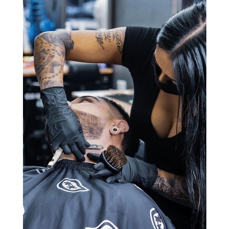 La brosse de doigt en poils de sanglier ferme "Firm Bristle Knucke Brush" de Irving Barber Company est une brosse avec des poils qui ont une résistance mi-ferme et qui fonctionne bien avec tous les types de cheveux.