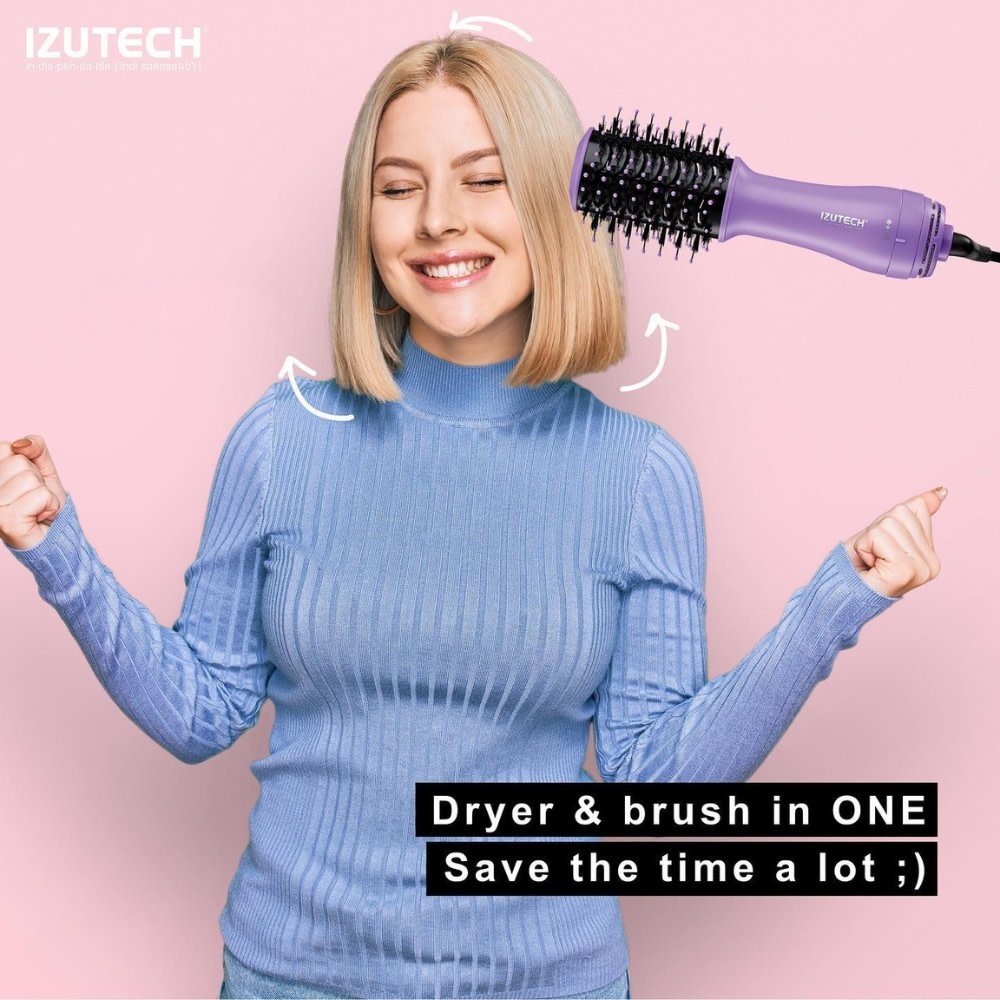 Séchez au sèche-cheveux et créez du volume avec le "TORO Portable 2-in-1" de Izutech. La tête de brosse chauffante de 2 pouces de TORO est conçue pour se rapprocher de la zone du cuir chevelu et créer un volume ultime.