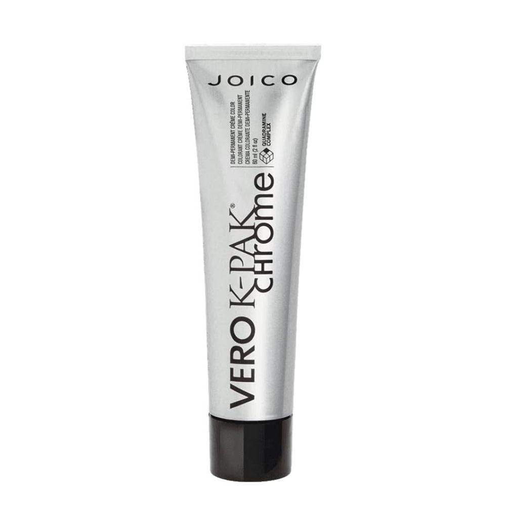 La coloration demi-permanente ''Vero K-Pak Chrome'' de Joico est une formule douce, avec un pH acide de 6.8, sans ammoniaque et haute en brillance. Elle dépose la couleur sans l’éclaircir et dure de quatre à huit semaines. Cette coloration polyvalente et dynamique amplifie l’éclat, rafraîchit les nuances délavées et couvre naturellement le gris (50-70%). De plus, il s’estompe graduellement, en faisant le choix idéal pour les hommes et l’harmonisation du gris.