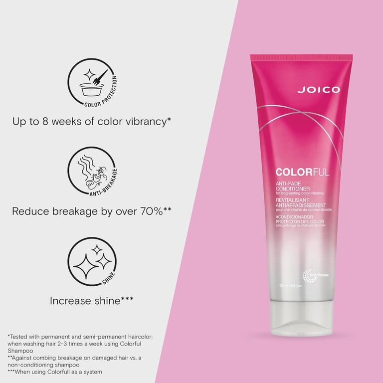 Le revitalisant anti-affadissement "ColorFul" de Joico est un soin quotidien essentiel conçu sur mesure pour répondre aux besoins des cheveux colorés. Sa formule équilibrée en hydratation redonne une douceur soyeuse et un éclat lustré à chaque mèche, sublimant votre couleur. Au-delà de son pouvoir nutritif, il préserve l'éclat des reflets en les protégeant du délavage et du ternissement prématuré.