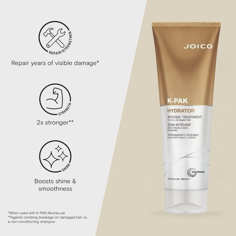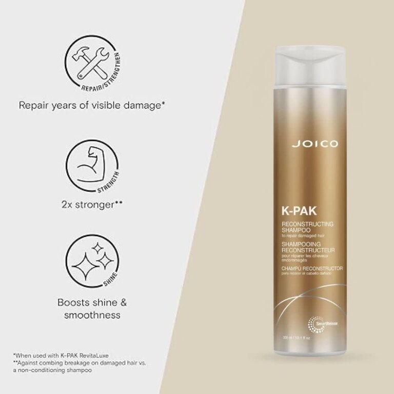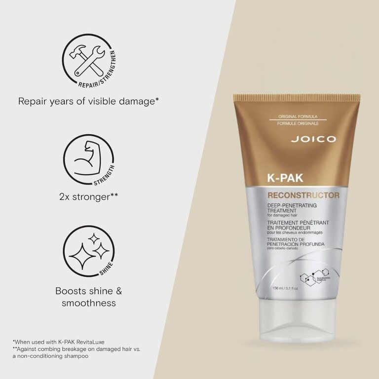 Restructurez la force et l'intégrité de vos cheveux avec le trio réparateur "K-Pak" de Joico, le rituel de soin ultime pour les chevelures abîmées et fragilisées. Ce système agit en profondeur pour reconstruire la fibre capillaire de l'intérieur, en infusant les cheveux avec des protéines de kératine pour une force et une résistance renouvelées. Les cheveux secs et endommagés retrouvent une matière saine, dévoilant une élasticité et une souplesse visibles.