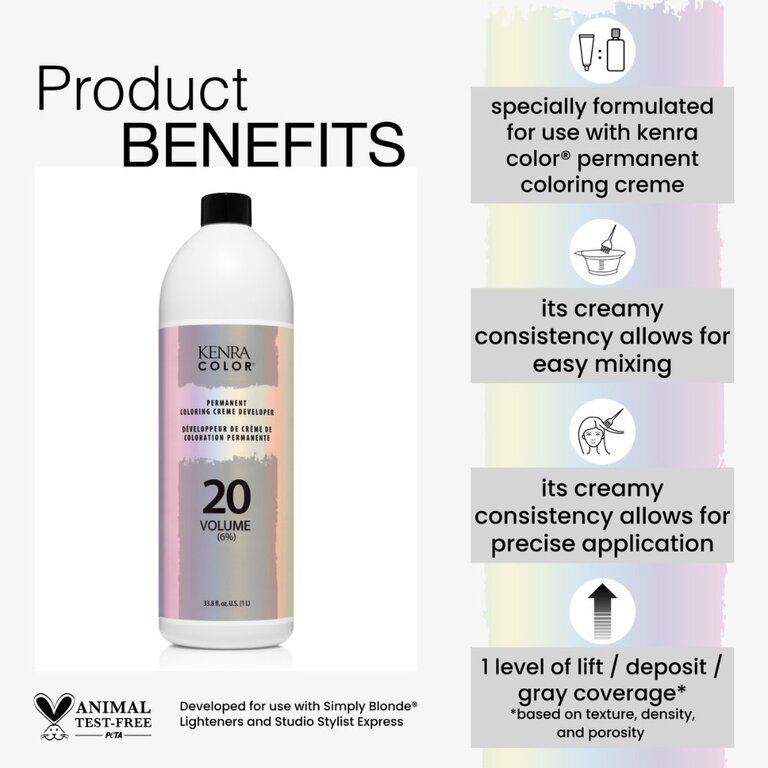 À utiliser avec la coloration permanente Kenra Color en ratio de 1 :1