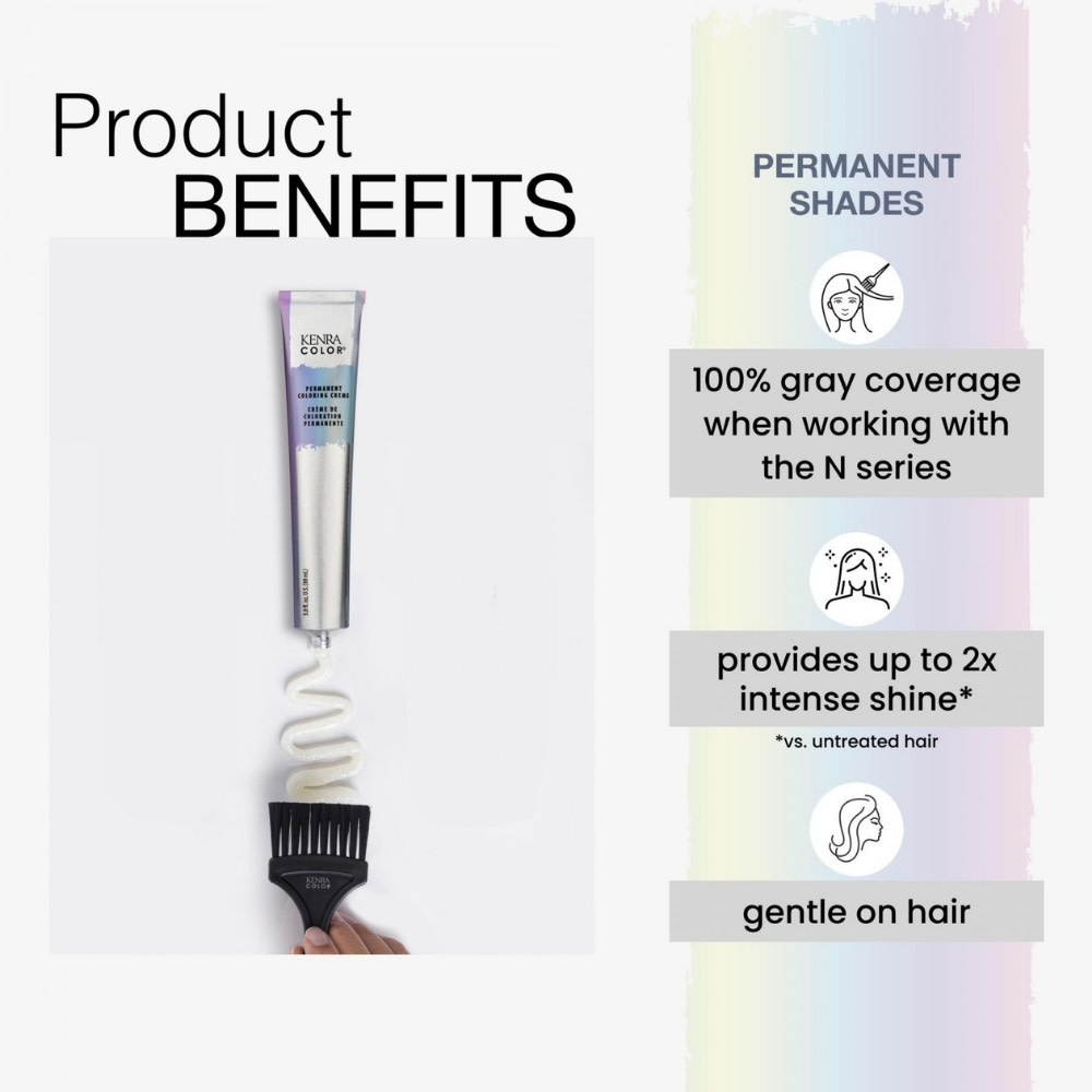 La coloration permanente "Kenra Color" simplifie plus que jamais l'obtention de couleurs éclatantes et multidimensionnelles, grâce à sa large gamme de 70 nuances miscibles entre elles. Cette coloration performante, simple et facile à utiliser offre des résultats uniformes et fiable. Sa formule douce, faible en ammoniaque, améliore la santé de vos cheveux, les rend plus faciles à coiffer et leur apporte une brillance intense.