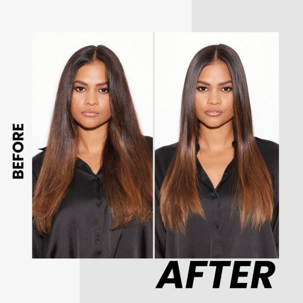Diffusez le spray légèrement sur l'ensemble de la chevelure pour un éclat lumineux instantané.