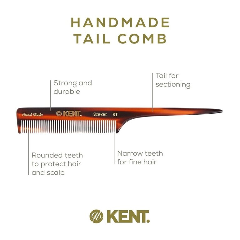 Le Kent 8T est idéal pour les professionnels et les particuliers exigeants. Il convient aux cheveux secs ou humides, et s’utilise pour les coiffures techniques, les séparations nettes ou le démêlage délicat.