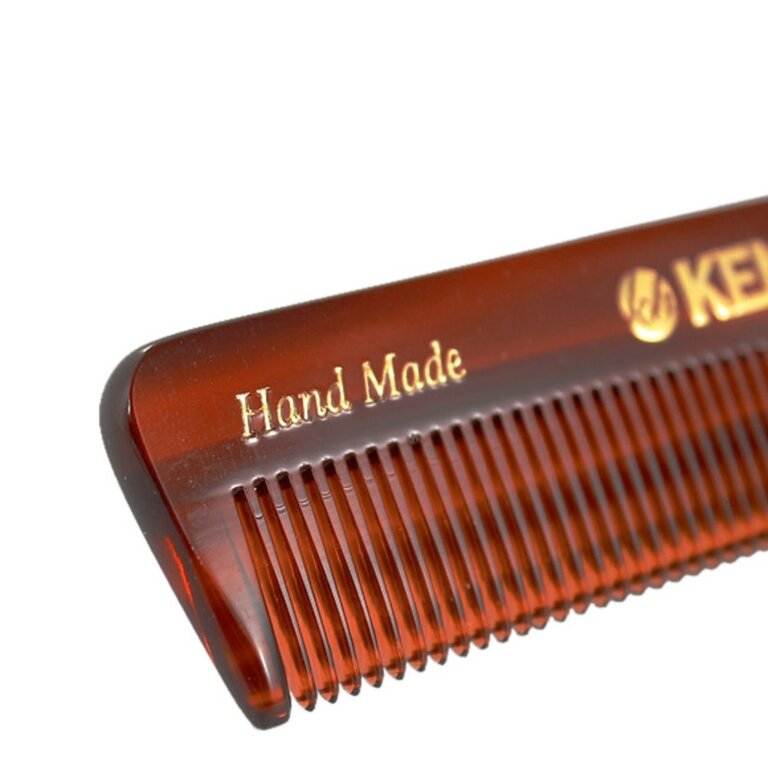 Fabriqué en acétate de cellulose, un matériau végétal reconnu pour sa souplesse, sa durabilité et ses propriétés antistatiques, ce peigne respecte la fibre capillaire tout en évitant les frisottis. Chaque dent est découpée à la scie, polie et arrondie à la main, garantissant une glisse douce sans accrocs ni irritation. Sa finition effet écaille de tortue lui confère une allure classique et professionnelle.