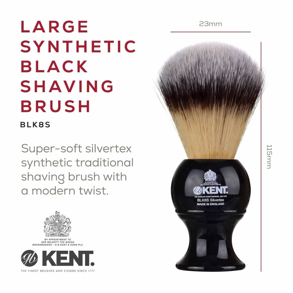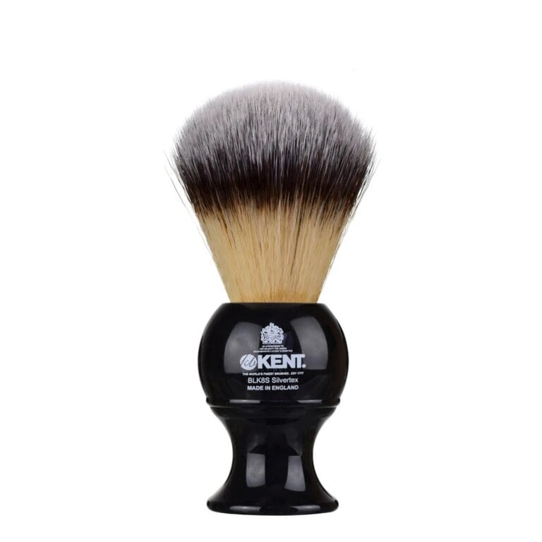 Le blaireau de rasage BLK8S de KENT est une valeur sûre pour ceux qui recherchent une brosse synthétique performante, douce et durable. Conçu en Angleterre et équipé de fibres Silvertex, il reproduit le comportement du poil de blaireau naturel tout en offrant une alternative moderne, hygiénique et sans matière animale.