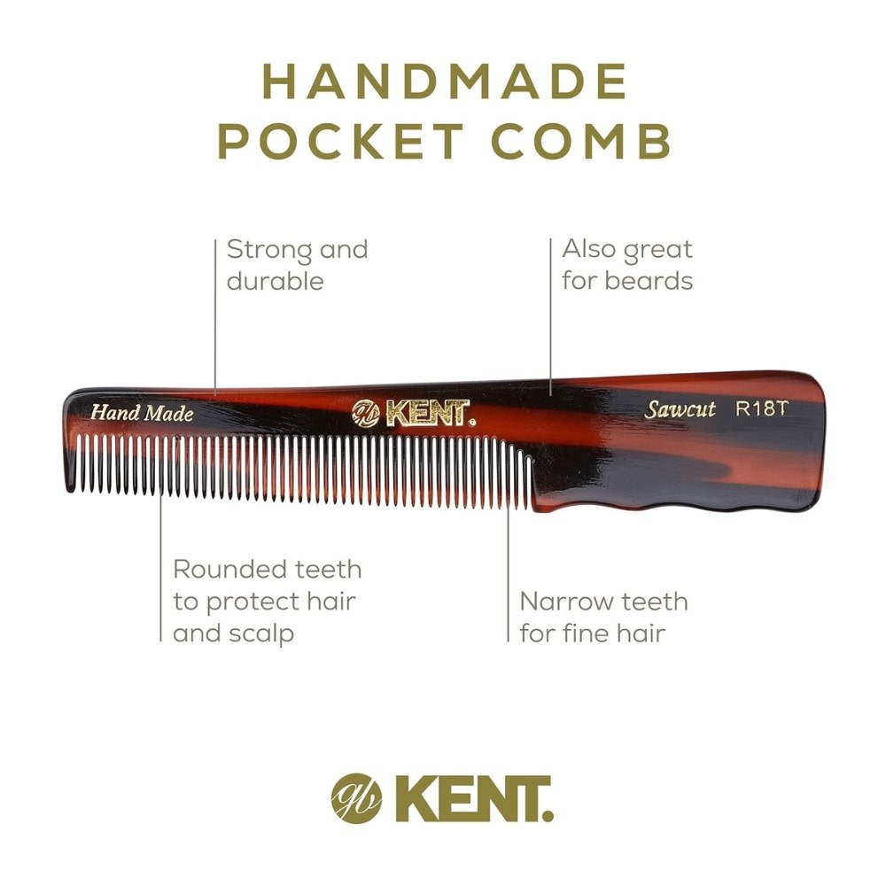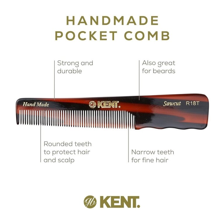 Kent - Peigne de poche R18T à dents fines avec repose‑pouce