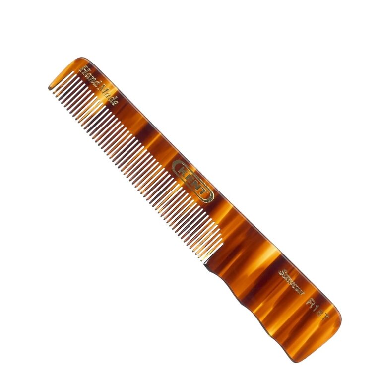 Le Kent R18T est un peigne de poche artisanal fabriqué à la main en Angleterre. Avec ses 138 mm de longueur et son format fin et léger, il est conçu pour un coiffage précis des cheveux fins ou clairsemés, que ce soit en déplacement, au travail ou dans une trousse de barbier. Son repose‑pouce intégré assure une prise en main sûre et confortable, facilitant les mouvements techniques du quotidien.