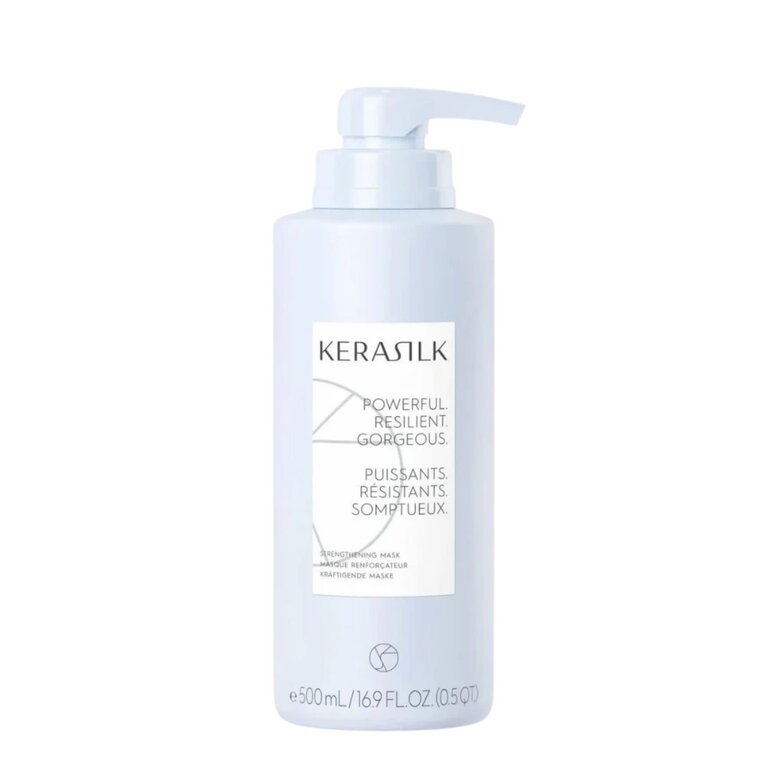 Le masque renforçateur "Strengthening Mask" de Kerasilk est infusé de Soie Biomimétique et de Poudre de Racine de Konjac. Sa formule 100% végane renforce, hydrate et repulpe les cheveux de l'intérieur, pour des cheveux denses jusqu'à 18 fois plus forts.