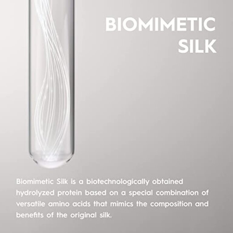 - Soie Biomimétique : est une alternative végane et pérenne à la soie traditionnelle d'origine animale. La Soie Biomimétique est une protéine hydrolysée obtenue par biotechnologie, basée sur une combinaison spéciale d'acides aminés polyvalents qui imite la composition et les avantages de la soie originale. Le processus de production de la Soie Biomimétique nécessite beaucoup moins d'eau et d'énergie que celui de la soie traditionnelle, ce qui en fait une alternative durable, haute performance, sans cruauté, biodégradable et végane.