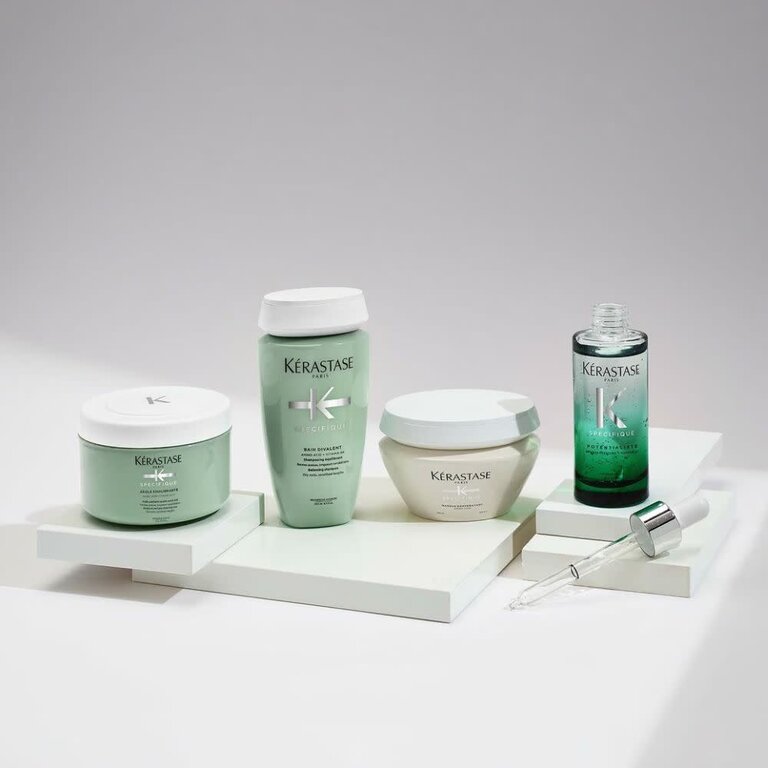 L'argile équilibrante Specifique de Kérastase est une crème purifiante lavante conçu pour répondre aux besoins des cheveux aux racines grasses et aux longueurs sensibilisées. Enrichie en argile verte et en argile de kaolin, cette pâte nettoyante agit comme un véritable aimant à impuretés, absorbant l'excès de sébum et les résidus de pollution qui s'accumulent sur le cuir chevelu. Sa texture crémeuse et onctueuse se transforme en une mousse délicate au contact de l'eau, offrant une sensation de fraîcheur intense.
