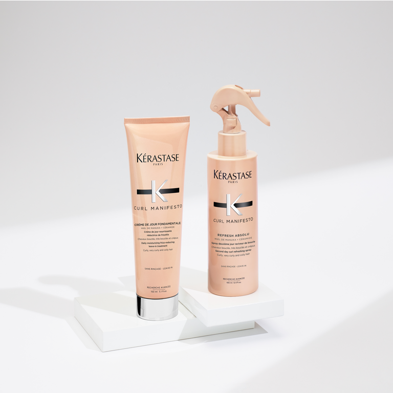 Au besoin, poursuivre avec un deuxième produit coiffant de la collection Curl Manifesto de Kérastase.