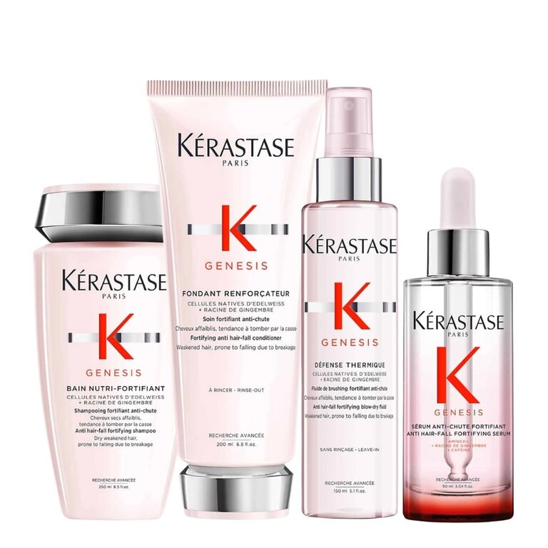 Évaluer Ensemble anti-chute cheveux secs Genesis avec Bain Nutri-Fortifiant, Fondant renforçateur, Fluide de brushing Défense Thermique et Sérum anti-casse fortifiant (250ml/8.5oz, 200ml/6.8oz, 150ml/5.1oz, 90ml/3.04oz)