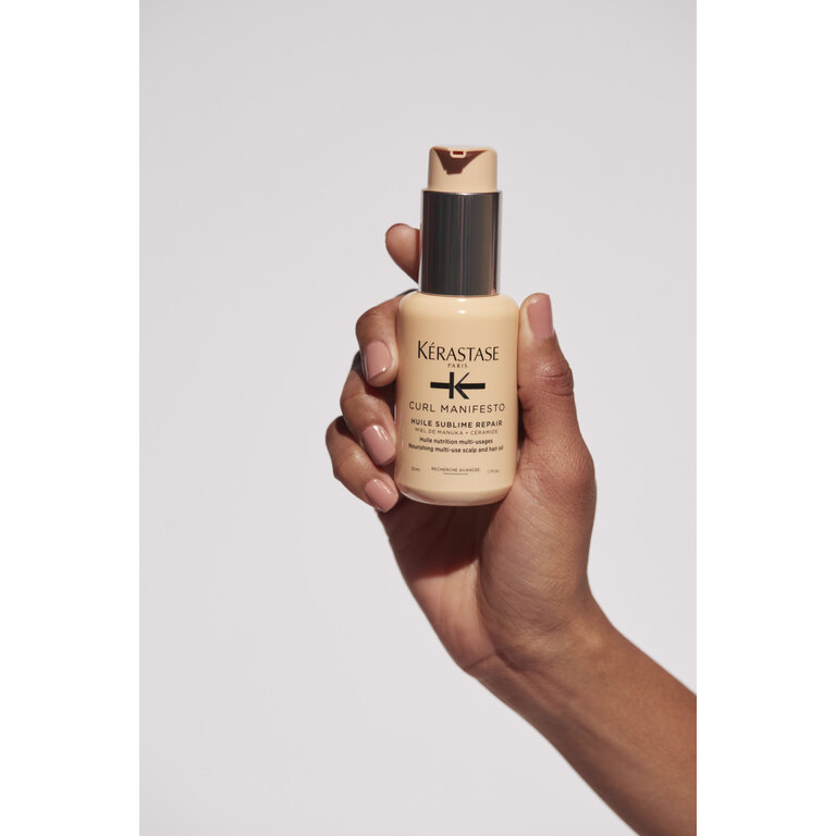 L'huile Incroyable Repair Curl Manifesto de Kérastase est un sérum de nutrition multi-usages conçu pour répondre aux besoins spécifiques des cheveux bouclés, frisés et crépus. Sa formule riche en actifs naturels, tels que le miel de Manuka, les céramides et un mélange d'huiles végétales, offre une nutrition intense et une hydratation en profondeur, pour des boucles lumineuses et parfaitement dessinées.